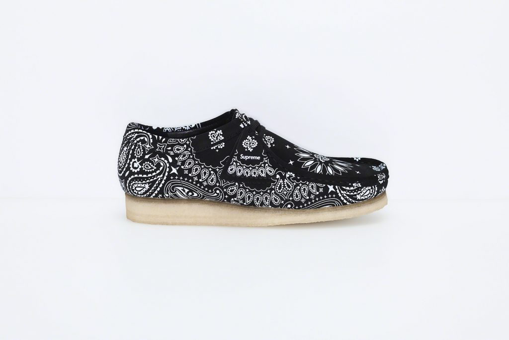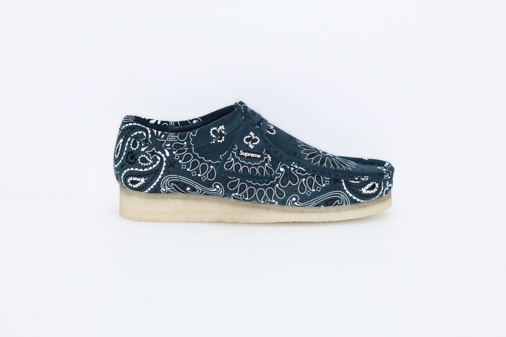 The Supreme collaborations continue. This time they team up with Clarks Originals for the 2019 Summer ‘Wallabee’ collection. The footwear will feature four different colorways with paisley bandana print in red, navy, black or beige. If you are a fan of the classic Clark shoe then you need to add these to your collection. Check out the official images above and the ‘Wallabee’ collection will be available at Supreme’s New York, Brooklyn, Los Angeles, London, and Paris locations with online availability starting May 30th.