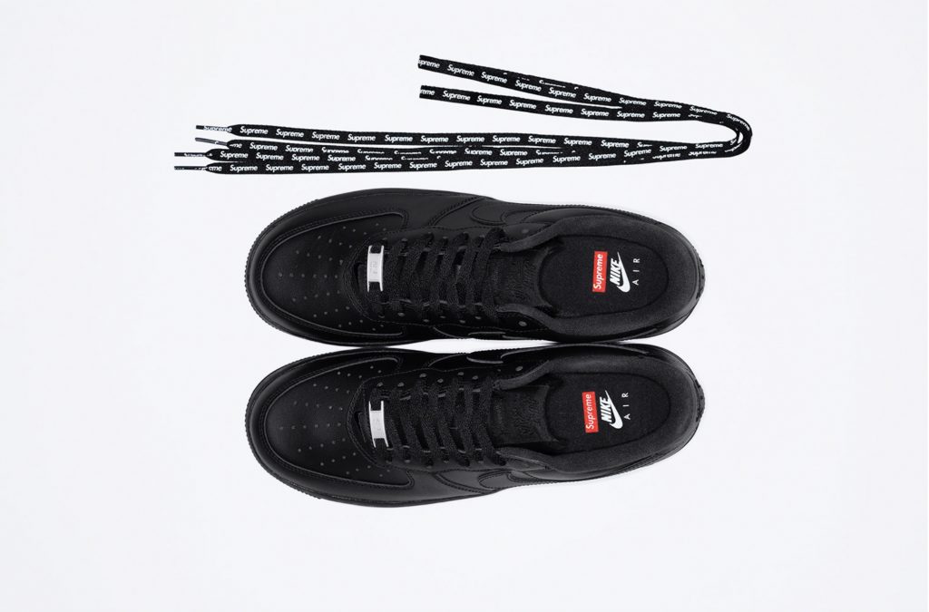With the resurgence of the Air Force 1, Nike teams up with Supreme for an exclusive version of the legendary sneaker. The Supreme x Nike Air Force 1 will arrive in a black and white color way with the classic Supreme logo on the heel, on the soles and shoe laces. Expect the sneaker to arrive in Supreme stores and online March 5th.